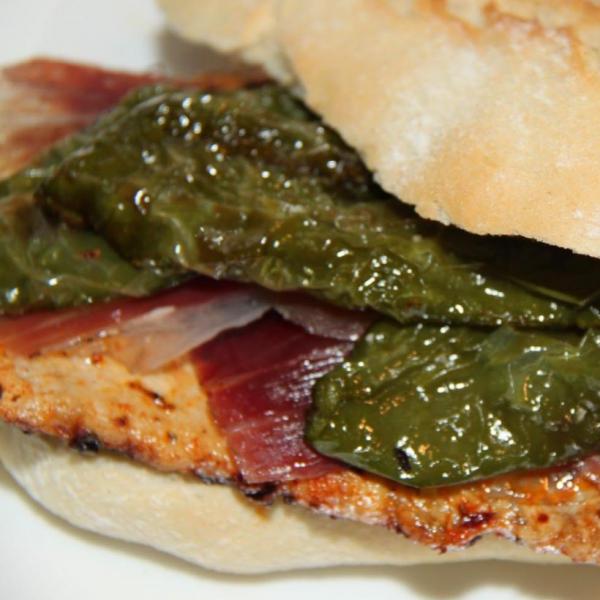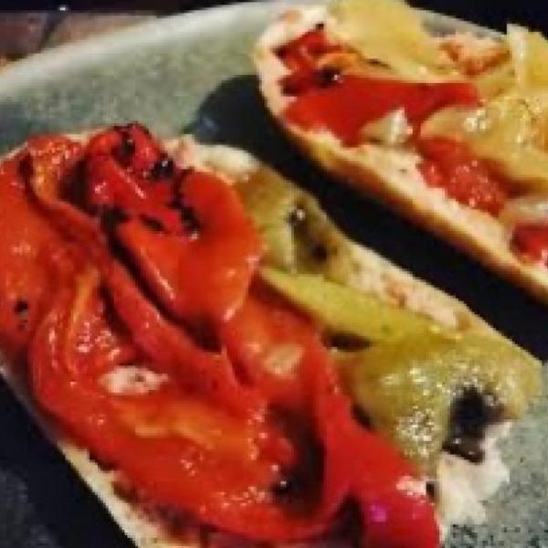 Secreto, pimiento, queso de cabra i alioli de mostaza